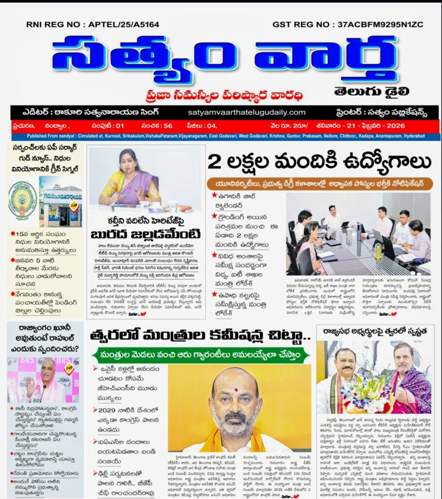 ‘బ్లేజింగ్ రాకెట్స్ – 2026’ పోస్టర్ను ఆవిష్కరించిన టిడిపి జిల్లా ప్రధాన కార్యదర్శి ఎన్ఎండి ఫిరోజ్ సత్యం వార్త / నంద్యాల జిల్లా ప్రతినిధి / ఫిబ్రవరి […]