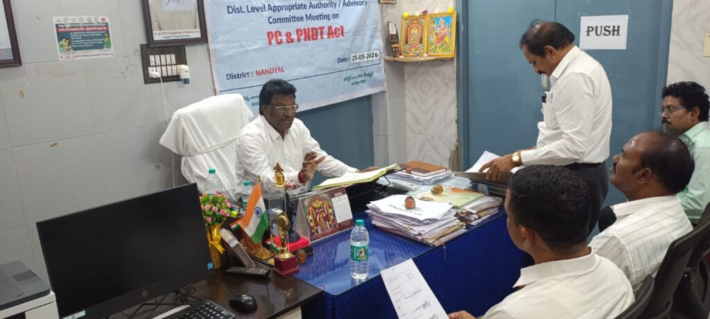 నంద్యాల జిల్లా కలెక్టర్ రాజకుమారి గణియా ఆదేశాల మేరకు డిస్టిక్ లెవెల్ మల్టీ మెంబర్ అప్పోపరేట్ అధారిటీ మీటింగ్ జిల్లా వైద్య ఆరోగ్యశాఖ అధికారి డాక్టర్ ఆర్ వెంకట రమణ అధ్యక్షతన వైద్య ఆరోగ్యశాఖ కార్యాలయం నందు పిసి మరియు పి ఎన్ డి టి సమావేశం నిర్వహించడం జరిగినది.