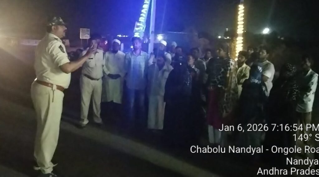 సత్యం వార్త / నంద్యాల క్రైమ్ రిపోర్టర్ / జనవరి 6 : రోడ్డు ప్రమాదాలను నివారించడమే లక్ష్యంగా నంద్యాల ట్రాఫిక్ సీఐ చాంద్ బాషా ఆధ్వర్యంలో చాబోలు గ్రామంలో ప్రత్యేక ట్రాఫిక్ అవగాహన కార్యక్రమం నిర్వహించారు.