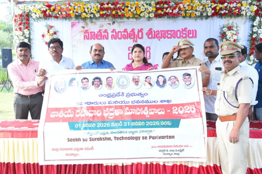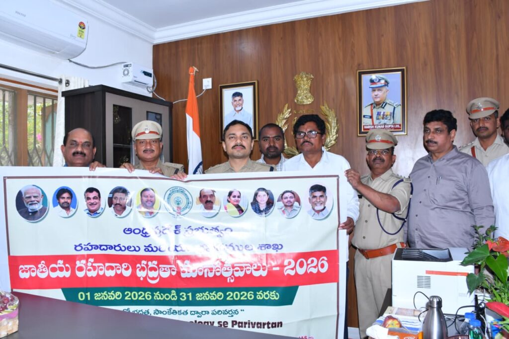 ప్రతి పౌరుడు ట్రాఫిక్ నిబంధనలను కచ్చితంగా పాటించడమే నిజమైన రోడ్డు భద్రత అని, ప్రజల సహకారం మరియు సమిష్టి కృషితోనే సురక్షిత రహదారులను సాధించవచ్చని జిల్లా కలెక్టర్ జి. రాజకుమారి పేర్కొన్నారు. గురువారం కలెక్టర్ క్యాంప్ కార్యాలయ ఆవరణలో నూతన సంవత్సర సందర్భంగా జాతీయ రోడ్డు భద్రతా మాసం – 2026 ప్రారంభోత్సవ బ్యానర్ ను కలెక్టర్ ఆవిష్కరించారు. ఎస్పీ కార్యాలయంలో జిల్లా ఎస్పీ సునీల్ షొరాణ్ రోడ్డు భద్రత బ్యానర్ ను విడుదల చేశారు.