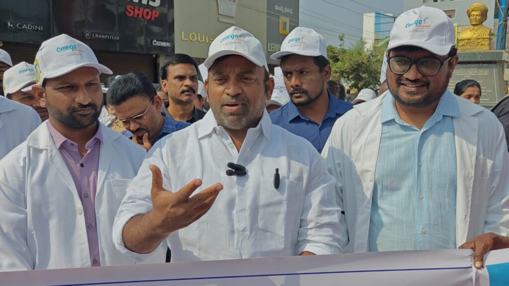 ప్రపంచ క్యాన్సర్ దినోత్సవం పురస్కరించుకుని నంద్యాల డెంటల్ సర్జన్స్ అసోసియేషన్ , ఒమేగా హాస్పిటల్స్ (కర్నూలు) సంయుక్త ఆధ్వర్యంలో నంద్యాల పట్టణంలో భారీ ” రెండు కిలోమీటర్ల వాకథాన్” నిర్వహించారు. క్యాన్సర్ పట్ల ప్రజల్లో అవగాహన కల్పించడమే లక్ష్యంగా “యునైటెడ్ బై యూనిక్యూ స్టెప్స్ టూ బిల్డ్ కాన్సర్ అవేర్నెస్” అనే నినాదంతో ఈ కార్యక్రమం జరిగింది. ఈ కార్యక్రమానికి ముఖ్య అతిథిగా నంద్యాల జిల్లా టీడీపీ ప్రధాన కార్యదర్శి ఎన్ఎండి ఫిరోజ్ గారు విచ్చేసి వాకథాన్ను ప్రారంభించారు. ఈ వాకథాన్ శ్రీనివాస్ సెంటర్ నుండి పద్మావతి నగర్ ఆర్చ్ వరకు ఉత్సాహంగా సాగింది.