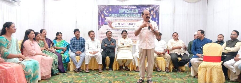 భారతీయ వైద్య సంఘం నంద్యాల శాఖ ఆధ్వర్యంలో, నంద్యాల ఐఎంఏ ముస్లిం వైద్యుల నిర్వహణలో పవిత్ర రంజాన్ మాసం పురస్కరించుకుని ఇఫ్తార్ విందు సమావేశం ఏర్పాటు చేయడం జరిగింది. ఐఎంఏ నంద్యాల కార్యదర్శి డాక్టర్ మహమ్మద్ రఫీ నిర్వహణలో ఉపవాస దీక్ష విరమణ, తదుపరి మౌలానా అబ్దుల్ హాది ఆధ్వర్యంలో ప్రార్ధనలు నిర్వహించారు. ఉపవాసం పాటిస్తున్న వైద్యులు, ఐఎంఏ రాష్ట్ర మాజీ అధ్యక్షులు, ఐఎంఏ కేంద్ర కమిటీ సభ్యులు డాక్టర్ రవి కృష్ణ, రాష్ట్ర కమిటీ సభ్యులు డాక్టర్ మధుసూదన రెడ్డి ఇందులో పాల్గొన్నారు. తదుపరి ఇఫ్తార్ విందు సమావేశంలో రాష్ట్ర న్యాయ, మైనారిటీ సంక్షేమ శాఖ మంత్రివర్యులు ఎన్ఎండి ఫరూక్ ముఖ్యఅతిథిగా, నంద్యాల జిల్లా తెలుగుదేశం పార్టీ ప్రధాన కార్యదర్శి ఎన్ఎండి ఫిరోజ్ గౌరవ అతిథిగా పాల్గొని ప్రసంగించారు.