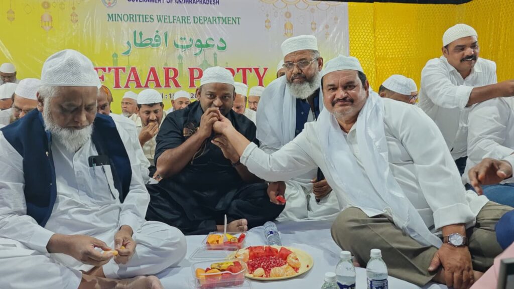 నంద్యాల పట్టణంలోని మున్సిపల్ టౌన్ హాల్ వేదికగా ఆంధ్రప్రదేశ్ ప్రభుత్వ మైనారిటీ సంక్షేమ శాఖ ఆధ్వర్యంలో ఆదివారం సాయంత్రం ‘దావత్-ఏ-ఇఫ్తార్’ (ఇఫ్తార్ విందు) కార్యక్రమం అత్యంత వైభవంగా నిర్వహించబడింది. రంజాన్ పవిత్ర మాసాన్ని పురస్కరించుకుని ఏర్పాటు చేసిన ఈ విందులో వివిధ రంగాలకు చెందిన ప్రముఖులు, ప్రజా ప్రతినిధులు మరియు ముస్లిం సోదరులు పెద్ద సంఖ్యలో పాల్గొన్నారు.