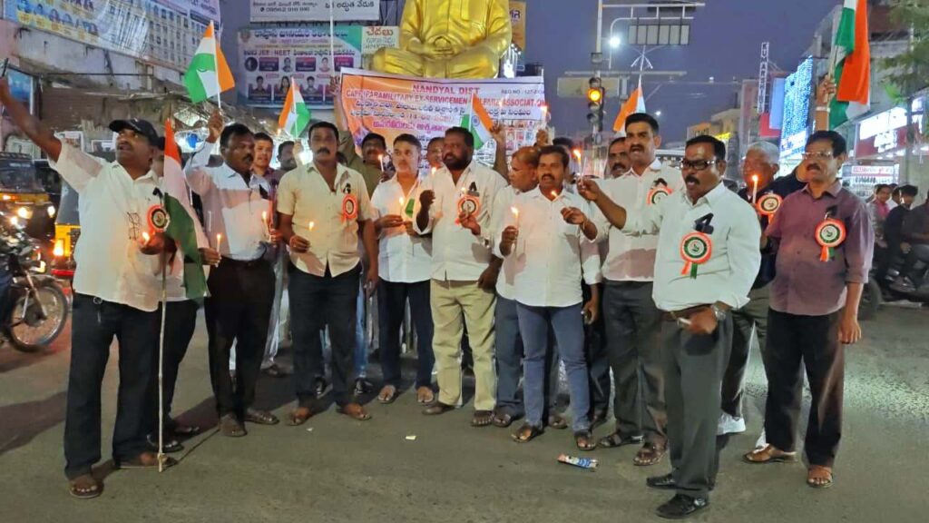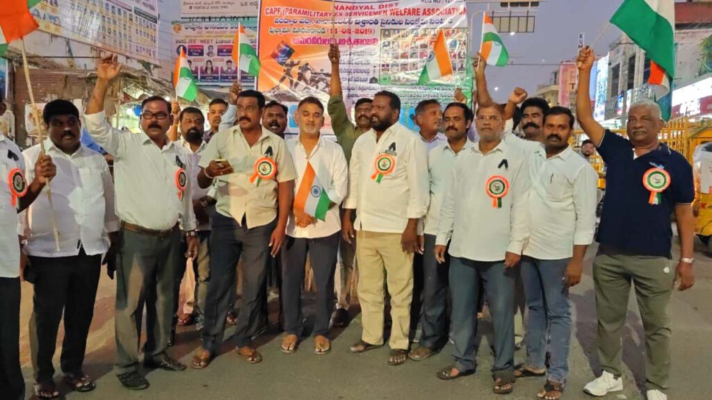 పుల్వామా ఉగ్రదాడి జరిగి ఏడేళ్లు పూర్తయిన సందర్భంగా, దేశం కోసం ప్రాణాలర్పించిన 40 మంది సీఆర్‌పీఎఫ్ జవాన్ల త్యాగాలను స్మరిస్తూ నంద్యాల జిల్లా సిఏపిఫ్ (పారామిలిటరీ) మాజీ సైనికుల సంక్షేమ సంఘం ఆధ్వర్యంలో శనివారం స్థానిక పద్మావతి నగర్ నుంచి శ్రీనివాస్ సెంటర్ వరకు ర్యాలీ నిర్వహించి కొవ్వొత్తులు వెలిగించి ఘనంగా నివాళులర్పించారు. ఈ కార్యక్రమంలో టీడీపీ రాష్ట్ర యువ నాయకులు ఎన్ఎండి ఫయాజ్ ముఖ్య అతిథిగా పాల్గొని సంఘీభావం తెలిపారు. 2019 ఫిబ్రవరి 14 న జమ్మూ-శ్రీనగర్ జాతీయ రహదారిపై జరిగిన ఆత్మాహుతి దాడిలో అమరులైన జవాన్ లకు ఘనంగా నివాళులర్పించారు.