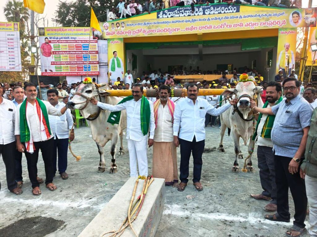 మహానందిలో ఘనంగా ఒంగోలు జాతి ఎడ్ల బలప్రదర్శన
