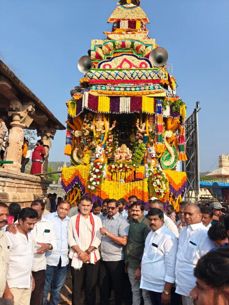 ప్రముఖ పుణ్యక్షేత్రమైన మహానందిలో మహాశివరాత్రి బ్రహ్మోత్సవాలు కన్నుల పండువగా జరుగుతున్నాయి. ఉత్సవాల్లో అత్యంత కీలక ఘట్టమైన శ్రీ మహానందీశ్వర స్వామి, శ్రీ కామేశ్వరీ దేవి అమ్మవార్ల రథోత్సవం మంగళవారం సాయంత్రం అత్యంత వైభవంగా నిర్వహించారు. ఈ వేడుకకు అతిథిగా తెలుగుదేశం పార్టీ రాష్ట్ర యువ నాయకులు ఎన్ఎండి ఫయాజ్ హాజరయ్యారు. ఆలయ మర్యాదలతో స్వాగతం అందుకున్న అనంతరం ఆయన రథాన్ని లాగి కార్యక్రమాన్ని ప్రారంభించారు.
