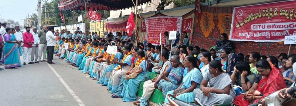 అంగన్వాడీల పట్ల రాష్ట్ర ప్రభుత్వం నిర్లక్ష్యం తగదని ఇప్పటికైనా అంగన్వాడీల సమస్యల పైన స్పందించాలని పరిష్కారం చేయాలని పరిష్కారం చేసేంతవరకు పోరాటం ఆగదని ఏపీ అంగన్వాడి వర్కర్స్ అని ఏర్పడిన రాష్ట్ర కమిటీ పిలుపులో భాగంగా ఫిబ్రవరి 23, 24, 25 తేదీ లలో ప్రాజెక్టు ల లో నిరసనలు అనంతరం 26 27 తేదీలలో జిల్లా కలెక్టర్ కార్యాలయం ముందు అప్పటికి స్పందించకుంటే మార్చి 2న జరిగే చలో విజయవాడ కార్యక్రమానికి అంగన్వాడీలంతా సిద్ధం కావాలని అదేవిధంగా రాబోయే కాలంలో కార్మికులందరికీ నష్టం కలిగించేలా నరేంద్ర మోడీ ప్రభుత్వం నాలుగు లేబర్ కోర్టులను తీసుకువచ్చిందని వాటి ద్వారా కార్మికులకు కనీస వేతనాలు అందకుండా చేసే ప్రయత్నం జరుగుతుందని ఇప్పుడు ఇస్తున్న వేతనాలే అరకురగా ఇస్తుంటే బ్రతకలేక చావలేక కనీస వేతనాలు అమలు కోసం కార్మికులంగా పోరాటం చేస్తుంటే వాటికంటే తక్కువగా ఇచ్చేందుకు కేవలము రోజువారీగా 178 రూపాయలు ఇవ్వాలని మాత్రమే లేబర్ కోడ్ లు ఉన్నాయని వీటి వలన పెట్టుబడుదారులకు, కార్పొరేట్ సంస్థలకు, పరిశ్రమల యాజమానులకు ఉపయోగపడుతున్నాయని, కార్మికుల జీవితాలతో చెలగాటమాడే దుర్మార్గమైనటువంటి లేబర్ కోడ్ లకు వ్యతిరేకంగా పోరాటం చేయడం కోసం చావో రేవో తెల్చుకోవాల్సిన సమయం ముందుందని వాటికి సిద్ధం కావాలని సీఐటీయూ రాష్ట్ర ఉపాధ్యక్షులు కందారపు మురళి గారు అన్నారు.