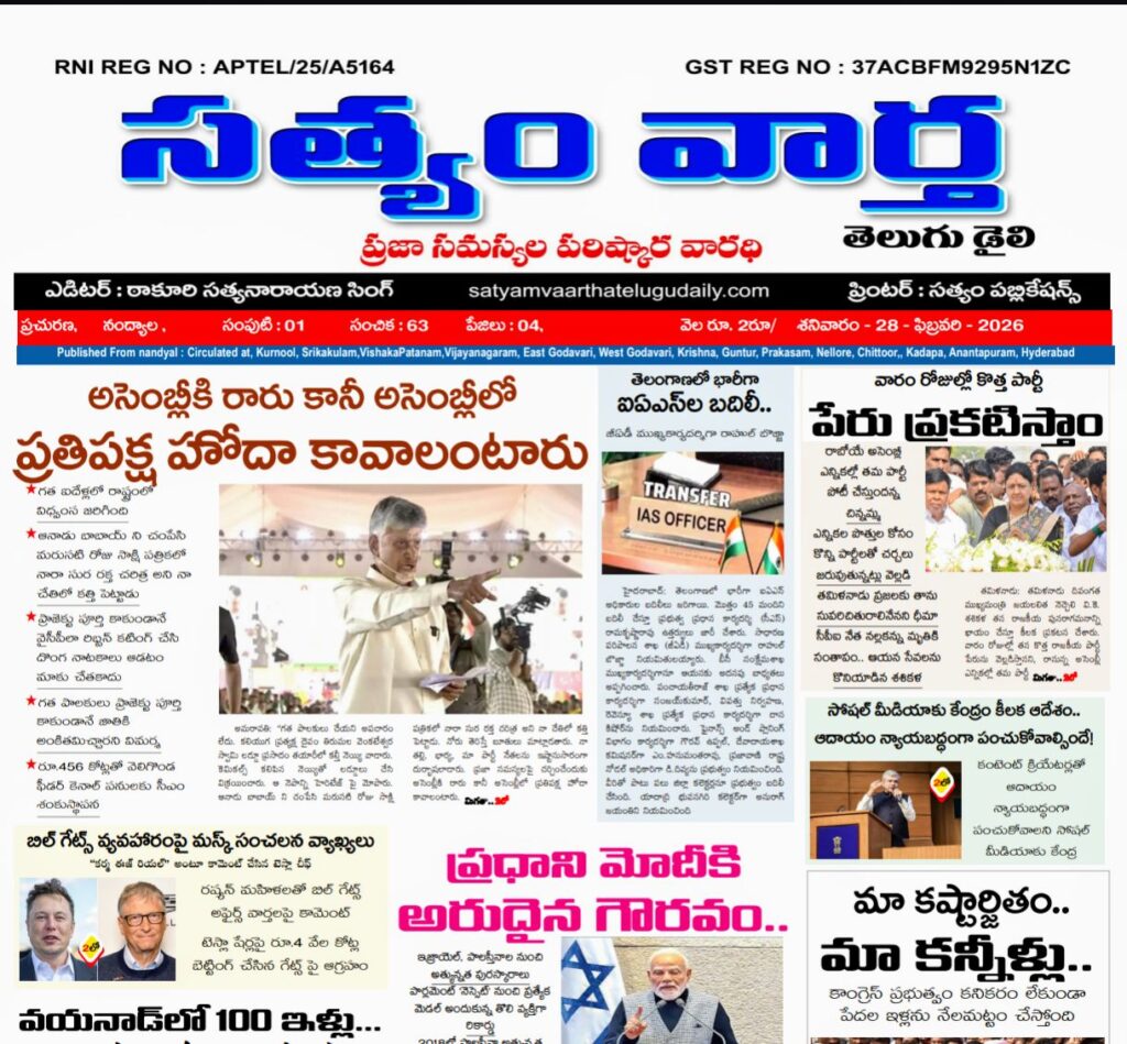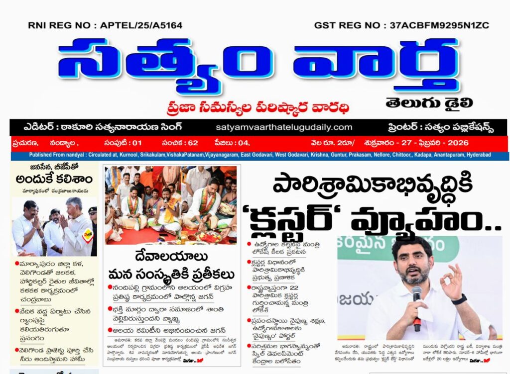 సత్యం వార్త / ఫిబ్రవరి 25:నారా లోకేష్ రాష్ట్ర మంత్రివర్యులు, తెలుగుదేశం పార్టీ జాతీయ ప్రధాన కార్యదర్శి హోదాలో నంద్యాల పార్లమెంటు పరిధిలోని తెలుగుదేశం పార్టీ ప్రజాప్రతినిధులు
