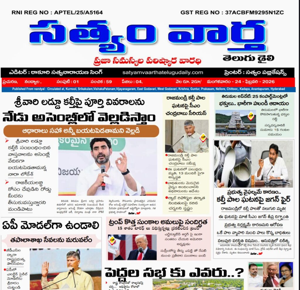 SATYAM VAARTHA TELUGU DAILY