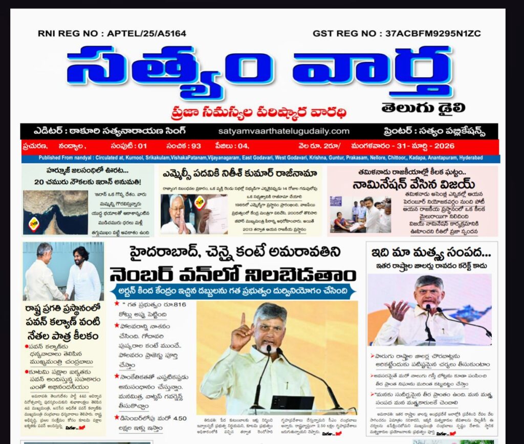 సత్యం వార్త / నంద్యాల జిల్లా బ్యూరో / మార్చి 31 : జిల్లాలో భూసంబంధిత సమస్యలను నాణ్యతతో, పారదర్శకంగా పరిష్కరించి ప్రజల సంతృప్తి స్థాయిని పెంపొందించేలా