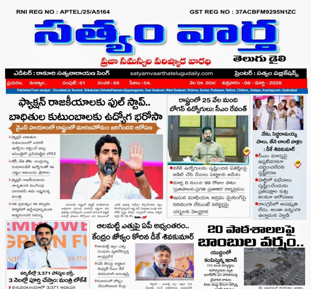 సత్యం వార్త / నంద్యాల జిల్లా క్రైమ్ / మార్చి 06 : నంద్యాల జిల్లా డోన్ మండలం కొత్త బురుజు గ్రామంలో ఈనెల 9వ తేదీన […]