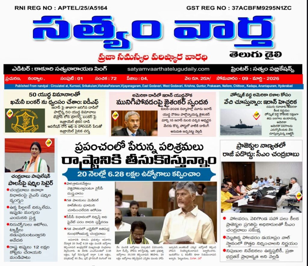 సోమవారం ఢిల్లీలోనే ఎంపీ డాక్టర్ బైరెడ్డి శబరి సత్యం వార్త / మార్చి 08:భారత పార్లమెంట్ లో సోమవారం ఎన్ డి ఏ పక్షం త్రి లైన్ […]