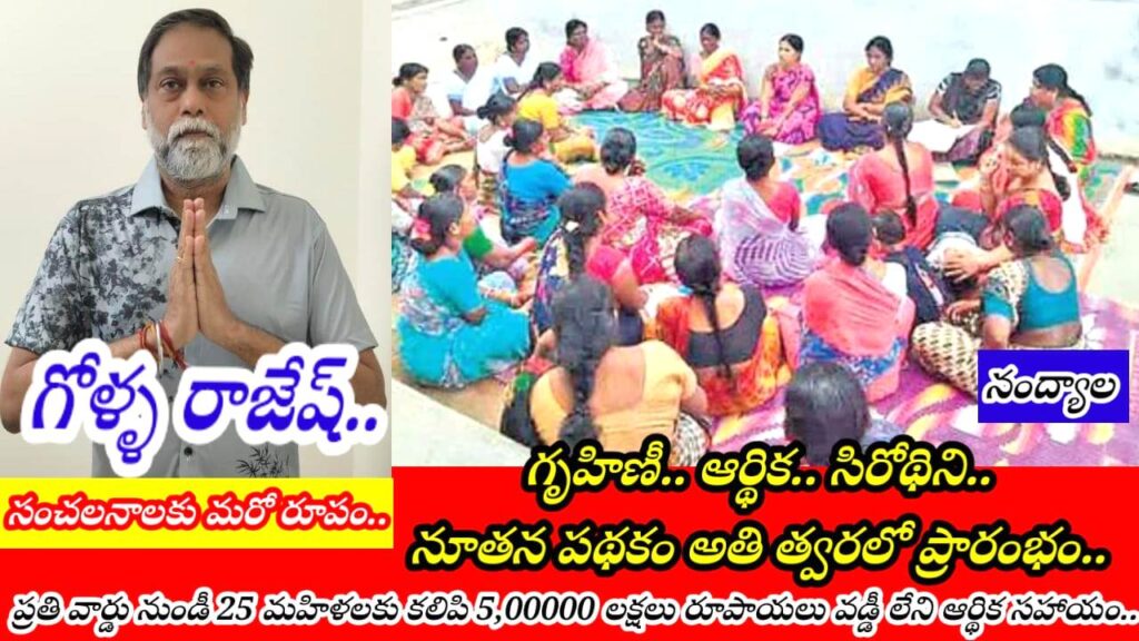 సంచలనాలకు మరో రూపం గోళ్ళ రాజేష్ గోళ్ళ రాజేష్ ఆధ్వర్యంలో గృహిణీ, ఆర్థిక, సిరోథిని, నూతన పథకం అతి త్వరలో ప్రారంభం నంద్యాలలోని ప్రతి వార్డు నుండీ