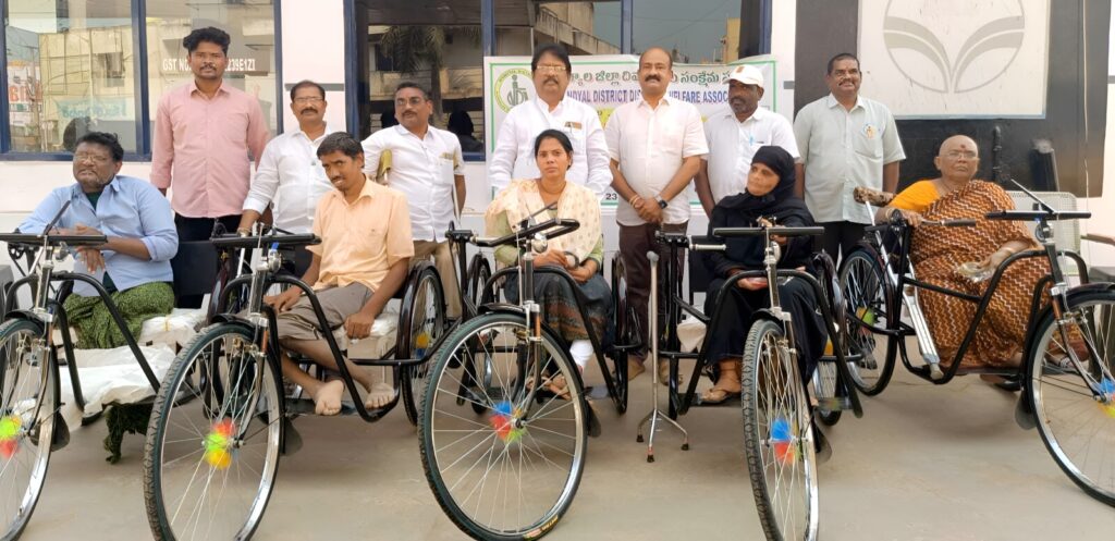 జి.పి.వెంకటస్వామి పెట్రోల్ స్టేషన్ యజమాని గుత్తి శ్రీహరి సౌజన్యంతో ఐదుగురు దివ్యాంగులకు నంద్యాల జిల్లా దివ్యాంగుల సంక్షేమ సంఘం ఆధ్వర్యంలో సత్యం వార్త / నంద్యాల జిల్లా