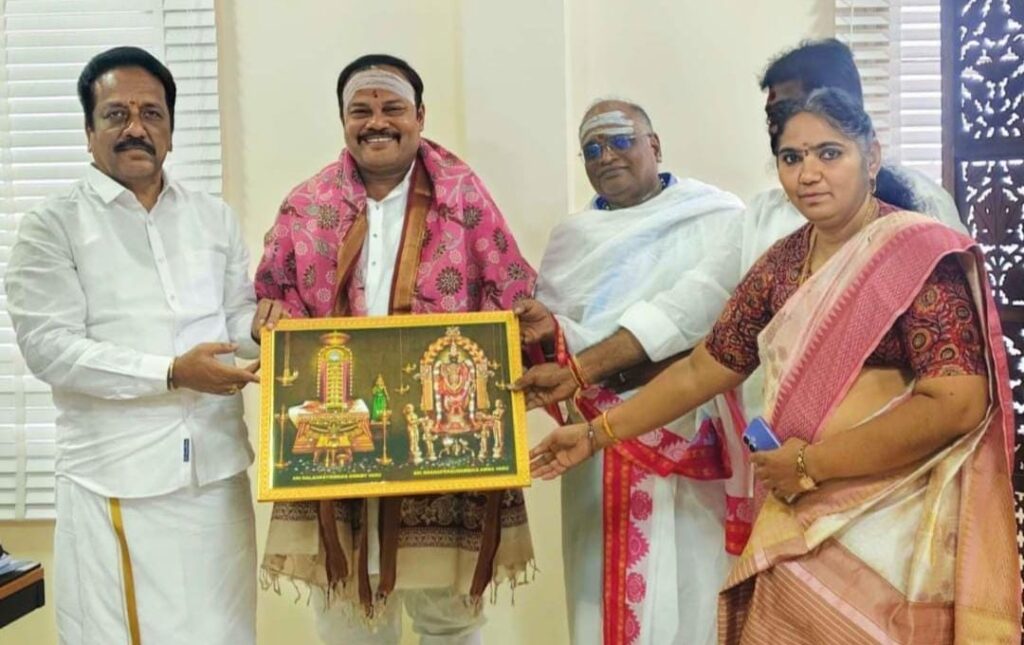 అహోబిల మఠం నూతన సీఏఓ వేణుగోపాల స్వామిని కలిసిన నంద్యాల మార్కెట్ ప్రసాద్