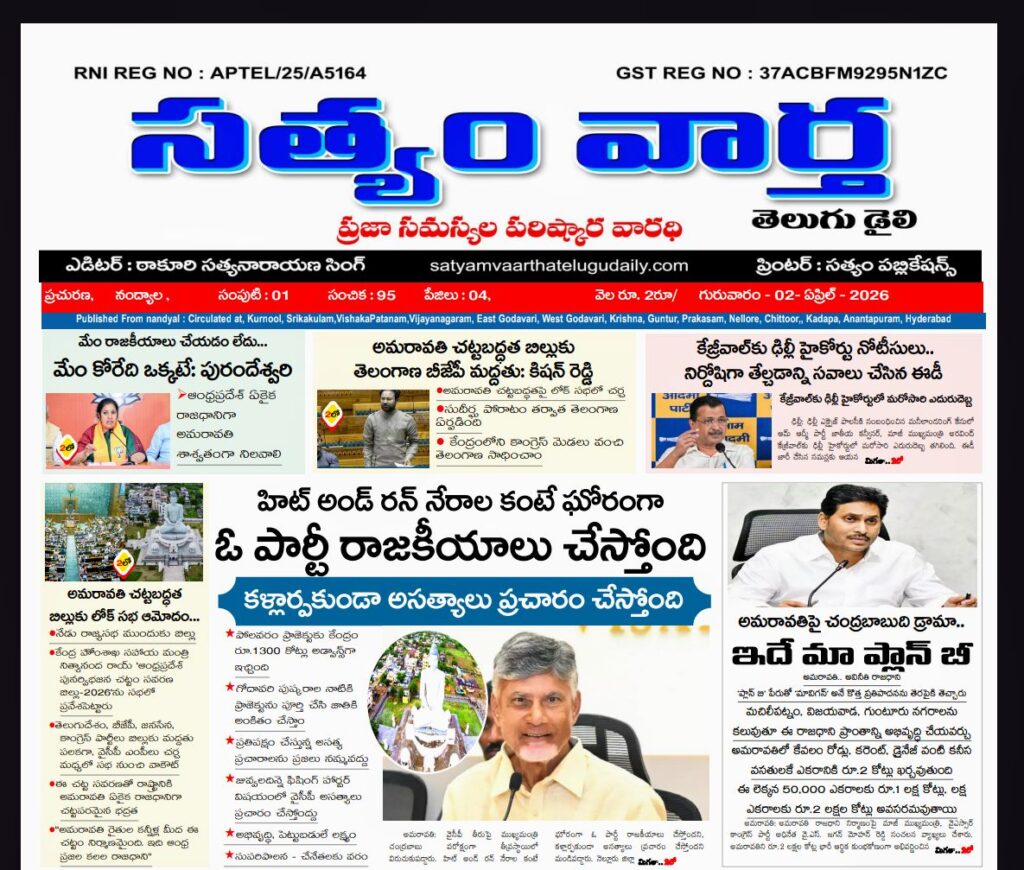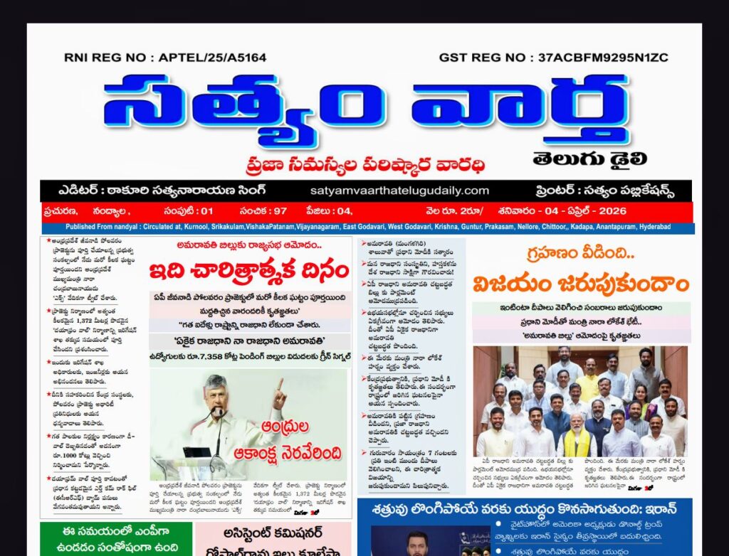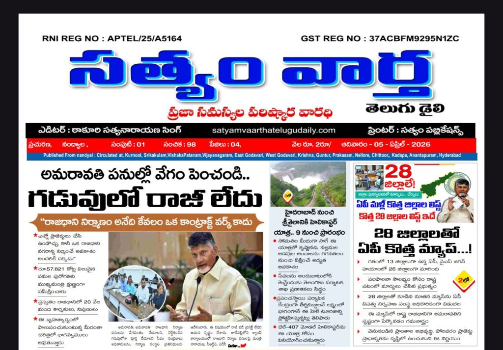 SATYAM VAARTHA TELUGU DAILY