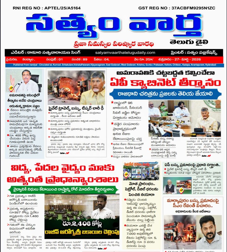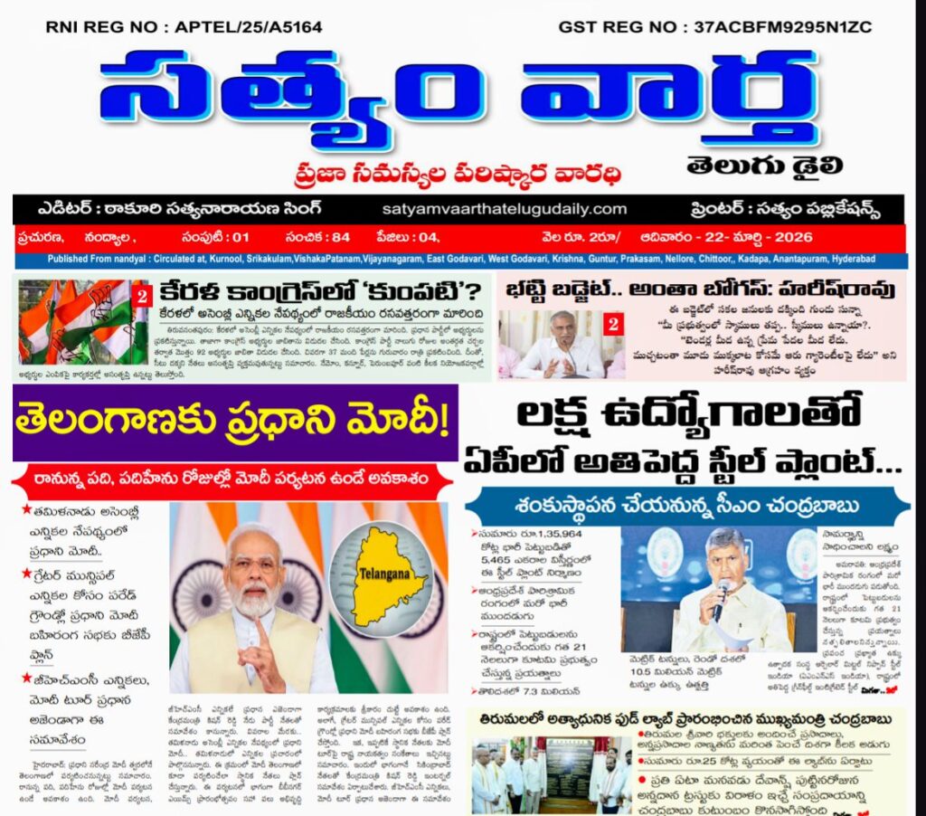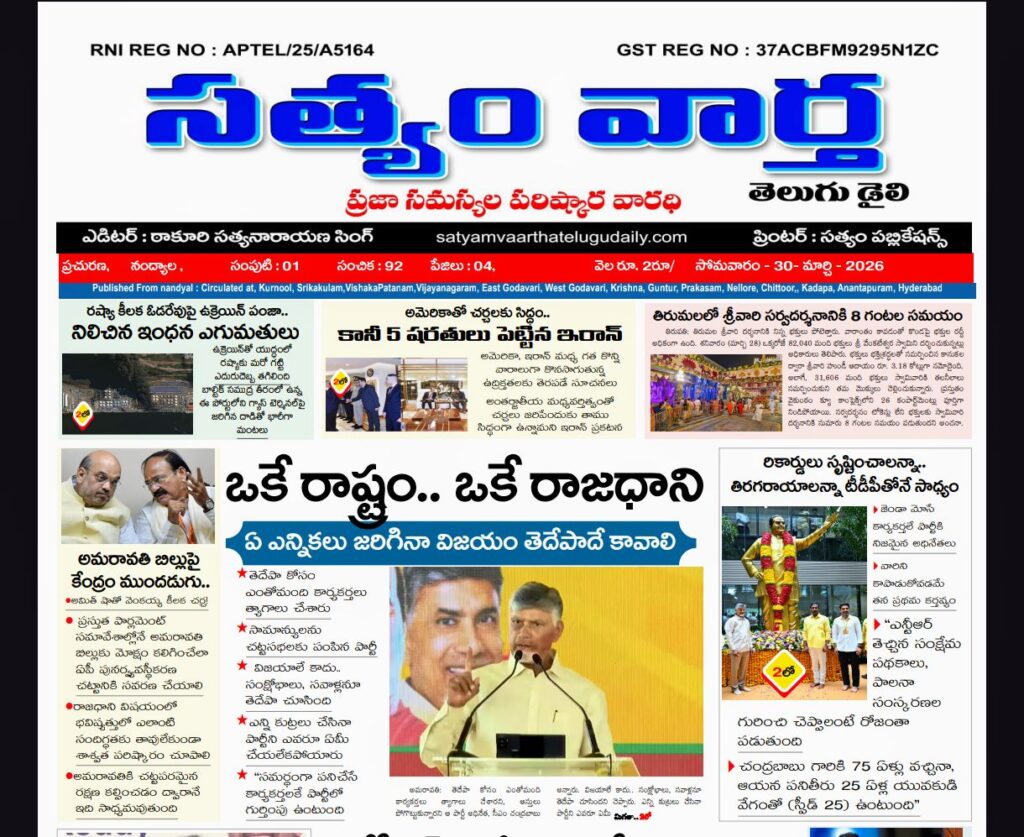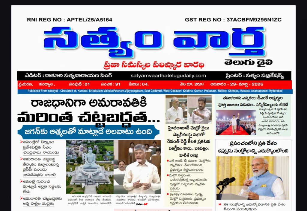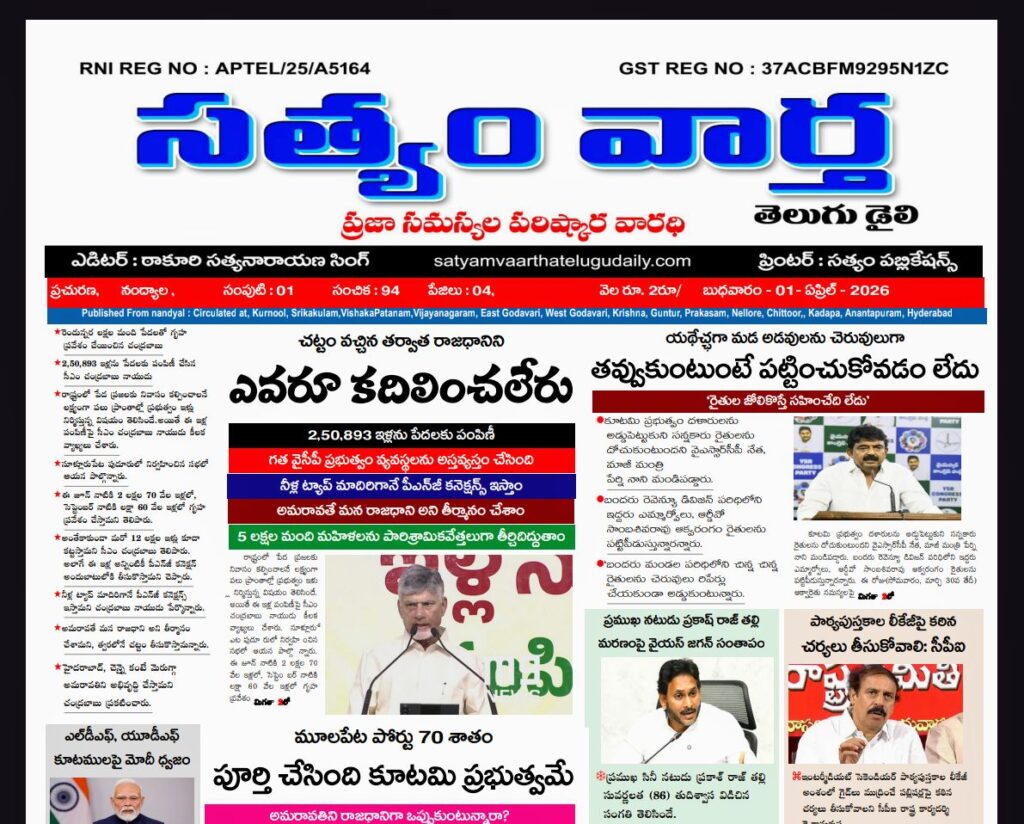 SATYAM VAARTHA TELUGU DAILY